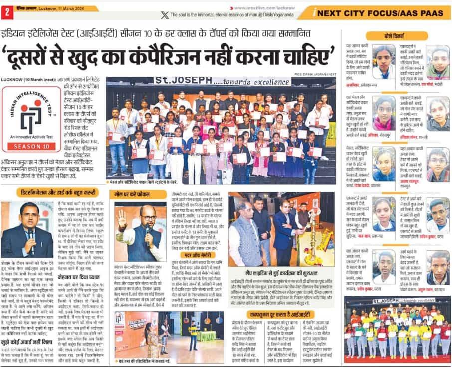 IIT REWARDED THE MERITORIOUS STUDENTS AT ST JOSEPH COLEGE (DAINIK JAGRAN)